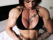 Paloma the most vascular woman on Earth flexes in bed