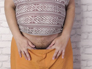 Pregnant chick rubs hairy pussy