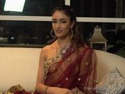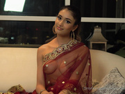 Kayla Kapoor talking dirty while wearing a sexy Indian dress and with her tits showing