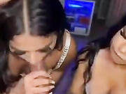 Hot blonde threesome blowjob in truck don’t know names