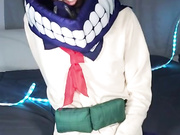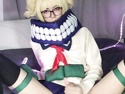 Cute trap Jess cosplaying Himiko Toga and cumming